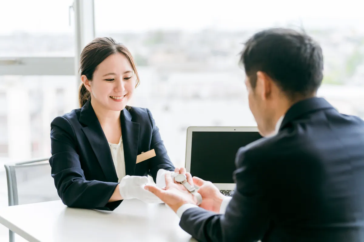 3.無料査定対面査定ですので、アピールしたい点をお伝えいただくことや査定理由をしっかりお伝えできるので、納得感のあるお取引が可能です。複数のお品物も1点1点、丁寧に査定いたします。